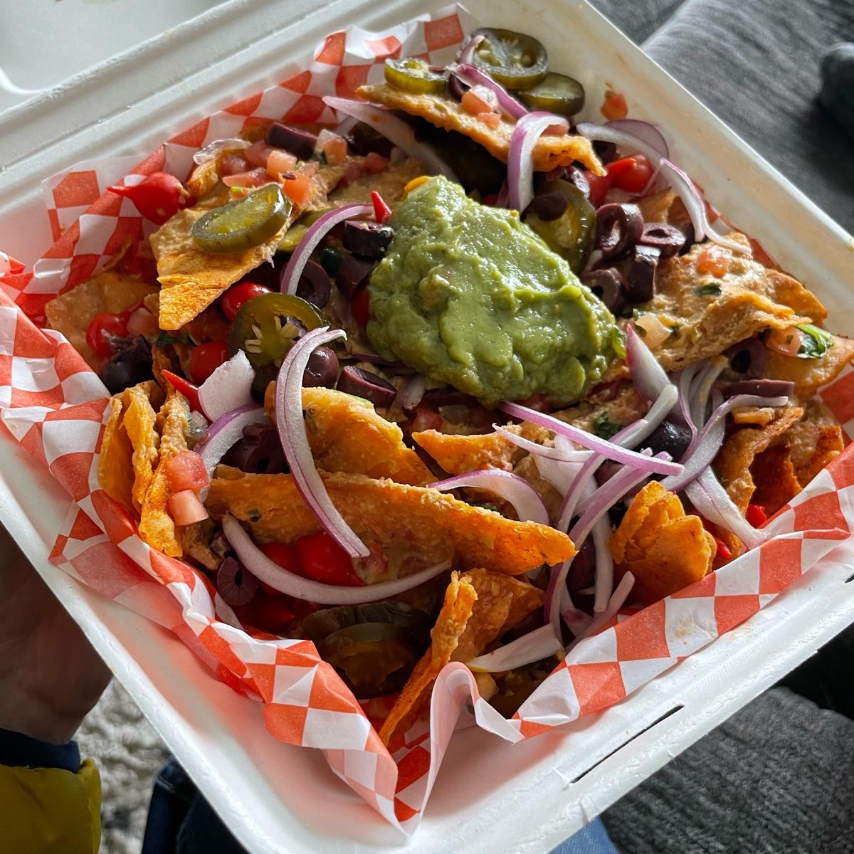 Absolutely delicious! A big enough serving I didn’t NEED to eat it all myself, but good enough I wanted to. I love the crispy texture of the chips and the creaminess of the sauce. I added guacamole to mine. The fresh tomatoes were an especially nice touch.