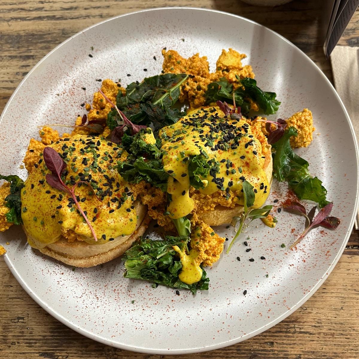 Toasted breakfast muffin with scrambled tofu, kale and hollandaise sauce. This was beautiful and super yummy and I’m glad I went with this!