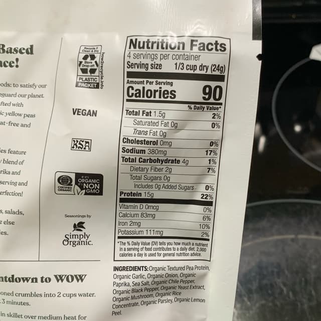 I am so pleased with these all purpose Meatless Crumbles. These organic seasoned crumbles are so easy use, just rehydrate and cook till all the moisture is absorbed.