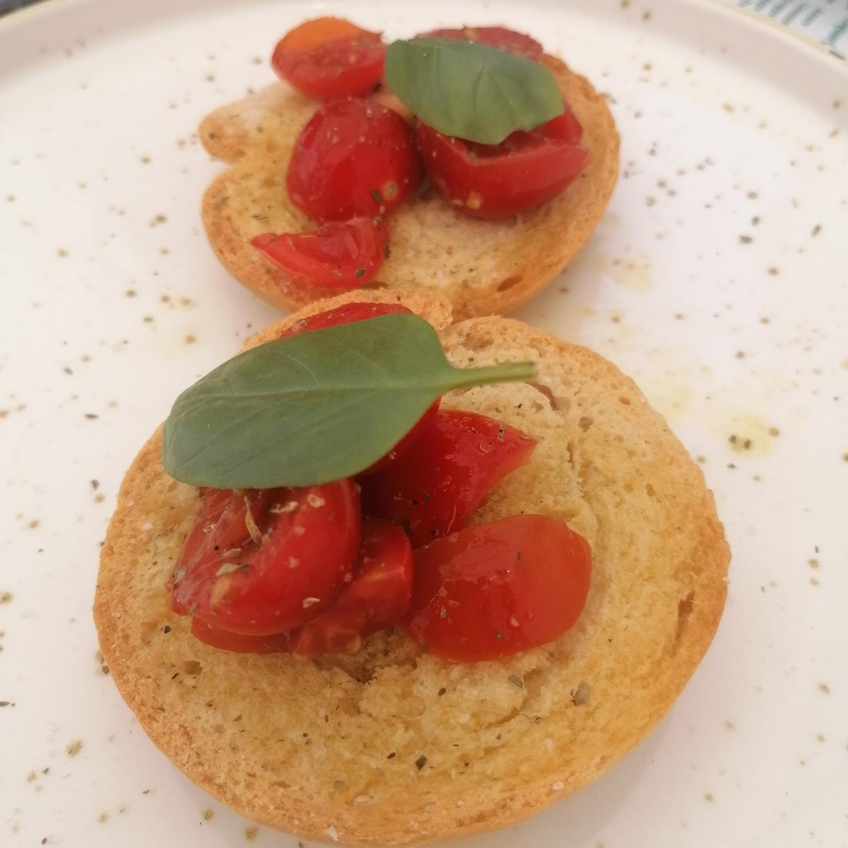 Frisa ostunese con pomodori, olio evo, sale e origano, molto semplice ma equilibrata nel sapore, magari qualche pomodoro in più avrebbero potuto metterlo.