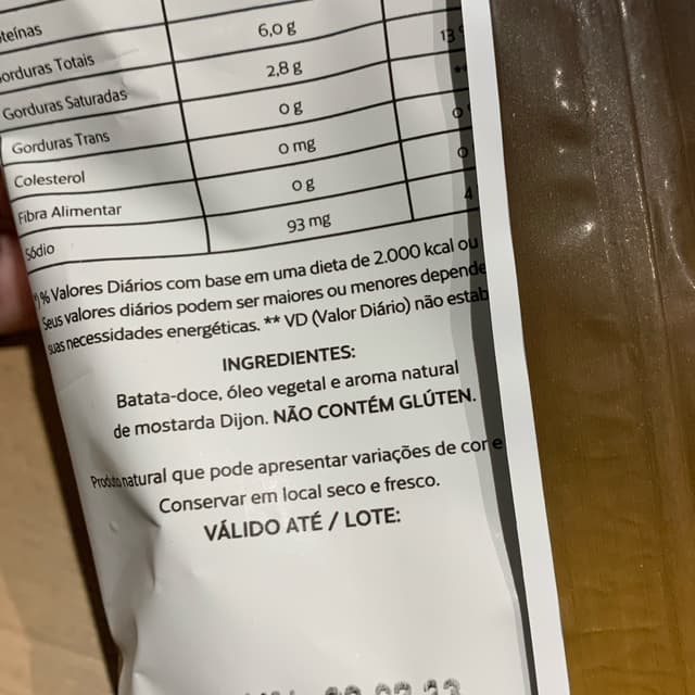 Muito saborosa essa batata doce chips, com mostarda dijon. Achei a mostarda bem suave, então pra quem gosta, recomendo.