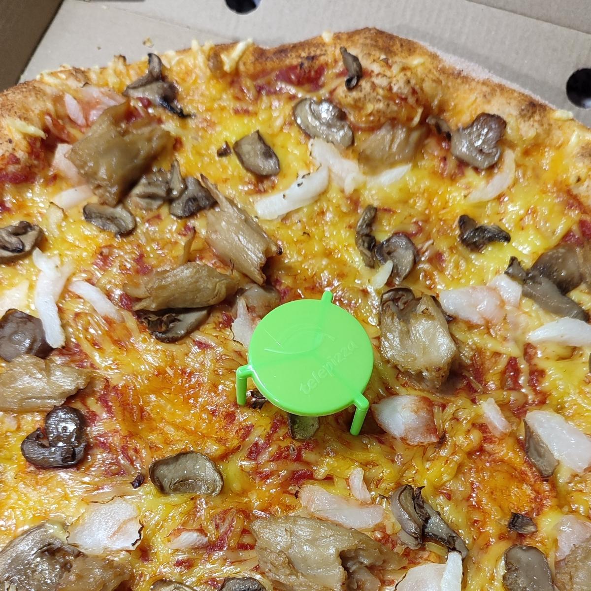 This vegan pizza is very nice too. It's cheesy and has all the mushroom, onion and vegan chicken bits you need.