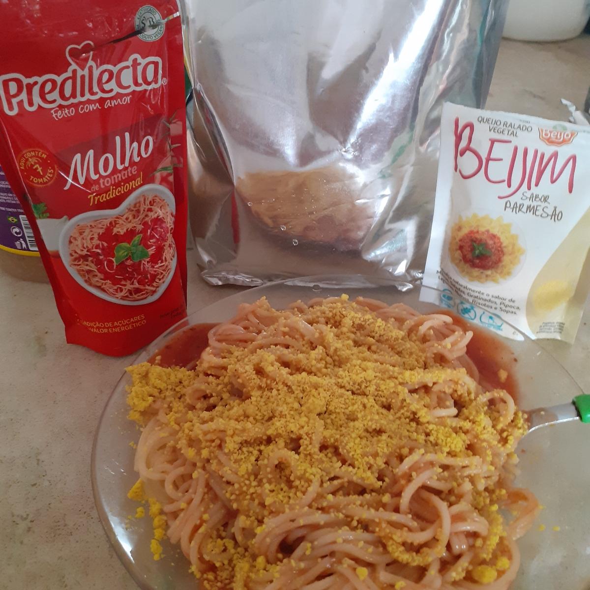 O molho de tomates vegano da Predilecta ficou ótimo na macarronada vegana com queijo ralado vegano, e o molho é ótimo pois não tem adição de açúcar, ideal para quem tem restrição.
