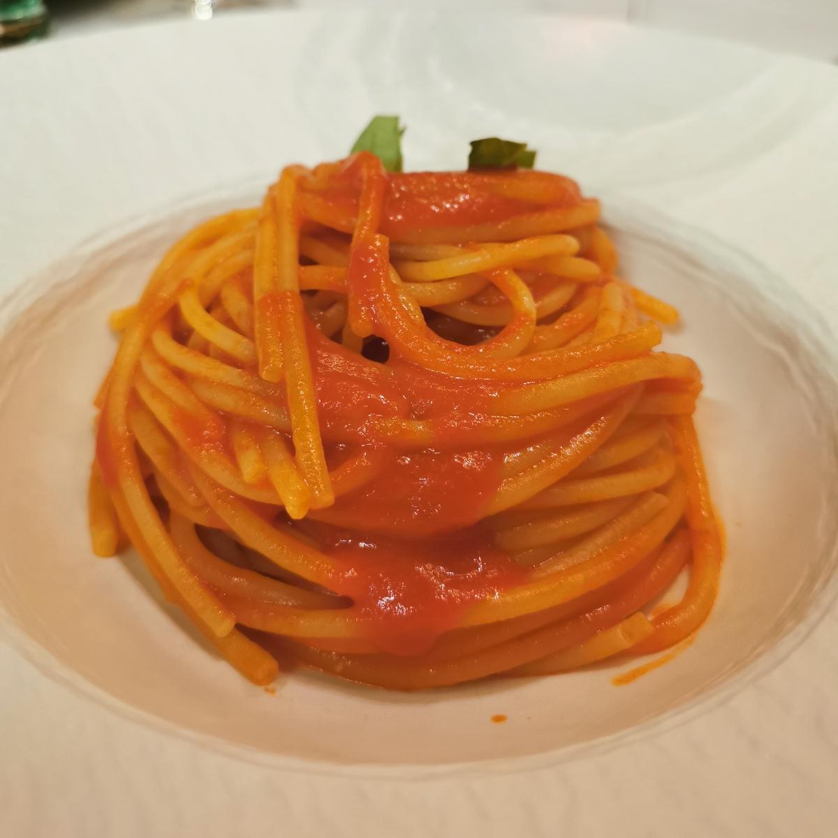 Buono spaghetto al pomodoro, cottura al dente e salsa dolce e molto buona.