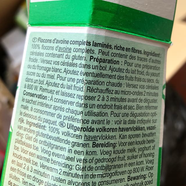 Confezione completamente in carta, prodotto buono, probabilmente non di altissima qualità, ma perlomeno senza alcun ingrediente aggiunto alla semplice avena in fiocchi.