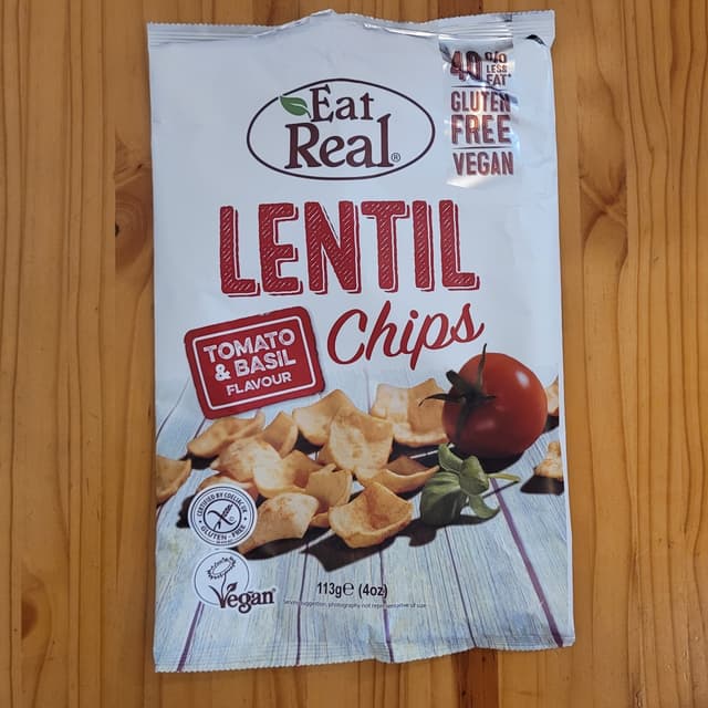 O salgadinho de lentilhas sabor tomate e manjericão é crocante, sem glúten e tem sabor bem marcante.