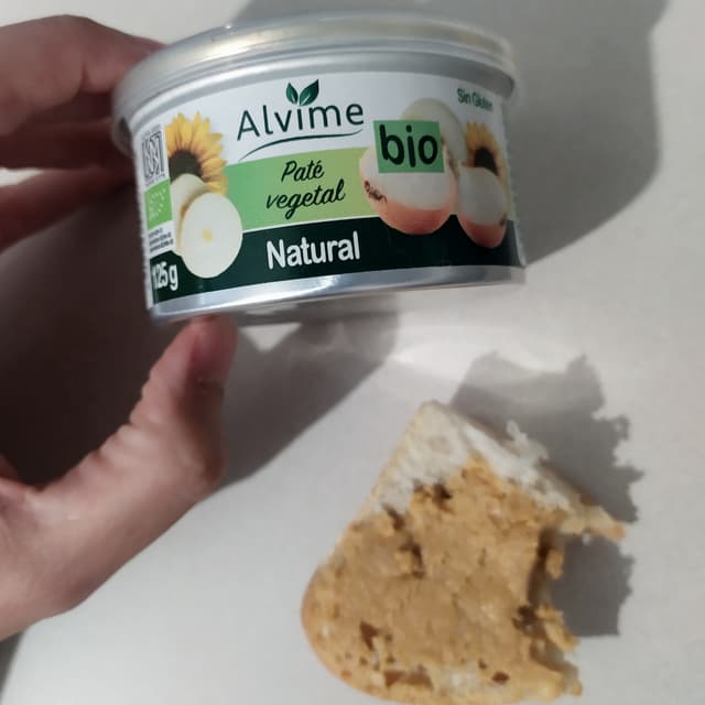 Paté vegetal natural hecho de pipas de girasol, cebolla y coco ecológicos. Está bien, sabor suave.