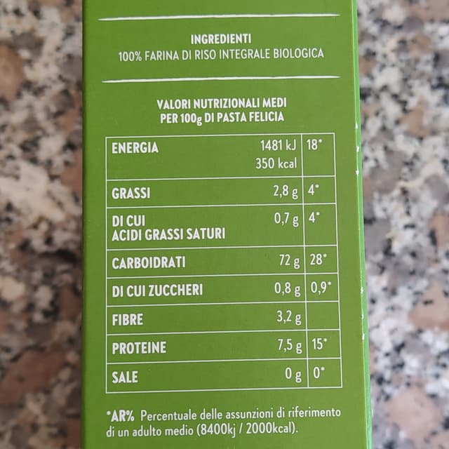 Penne rigate di riso integrale molto buone. Adoro la pasta Felicia, senza dubbio la migliore senza glutine in termini di qualità. Costo leggermente alto ma accettabile data la qualità degli ingredienti, in questo caso 100% farina di riso integrale. Acquistata da Esselunga.