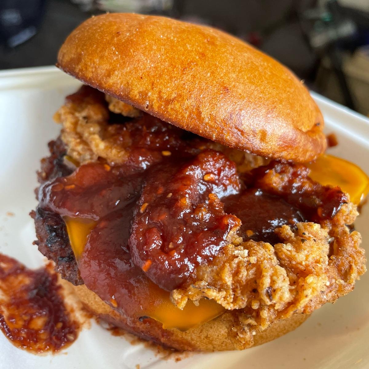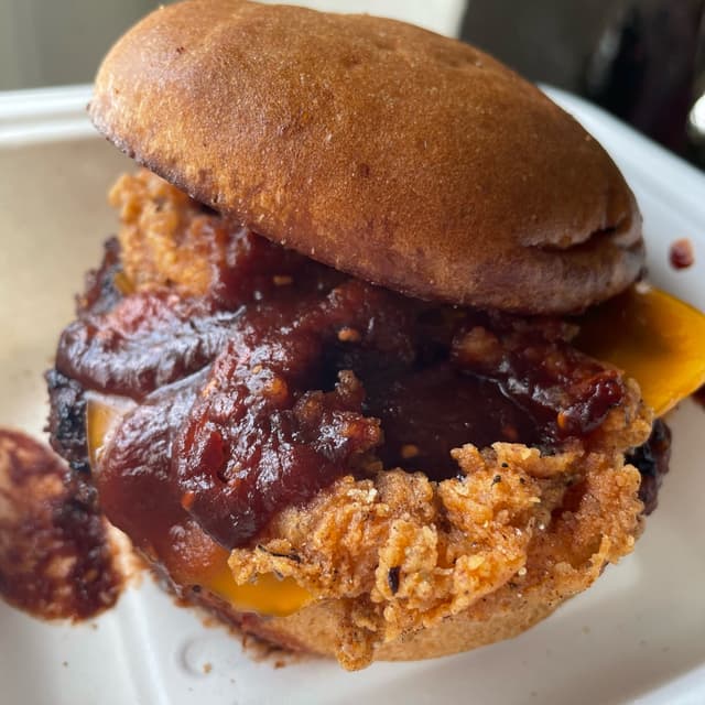 Savory and crunchy soy-based burger with BBQ drizzle. This was a special limited edition burger they released the day before national fried chicken day. So good!! Amazing mission and the only vegan drive thru in Dallas! Everyone is always so kind!!! They are opening more locations, hopefully coming to a spot near you! @colorfulcourtney I always enjoy running into you here at Project Pollo!🥰