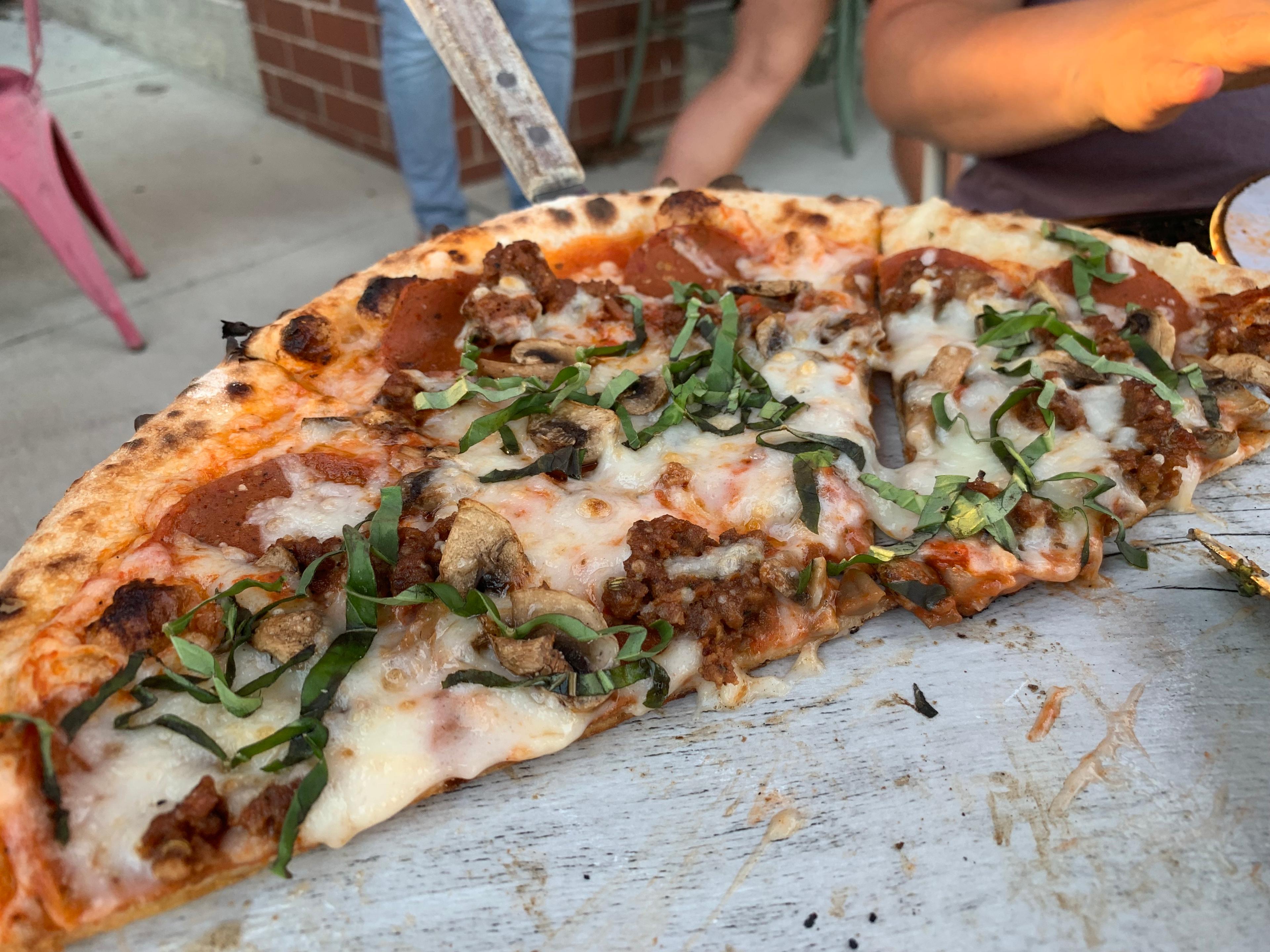 Wonderful vegan cheese, pepperoni and sausage. Great flavors come together so well. #uplandspeak