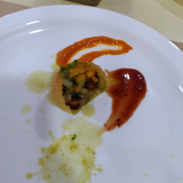 Bolitas de trigo fritas con verduras acompañadas por agua con menta, garbanzos y salsitas. Explosión de sabores! Personal amable!