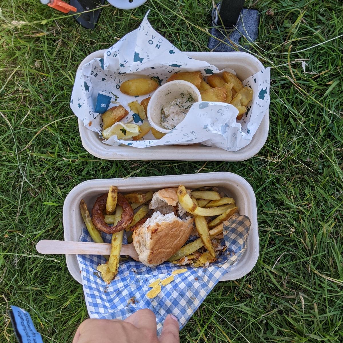 Nicely fried very chuncky chips. Adaquate salt and great with some vegan fish. :)
