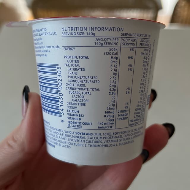 I wanted to love this considering the nutritional stats, and it was thick and creamy, but I didn’t really rate the flavour. My 6yr old didn’t like it either, both much prefer our homemade soy yoghurt using vitasoy milk. It did taste better when mixed with some fruit and muesli so still may buy occasionally, just wouldn’t eat on its own.