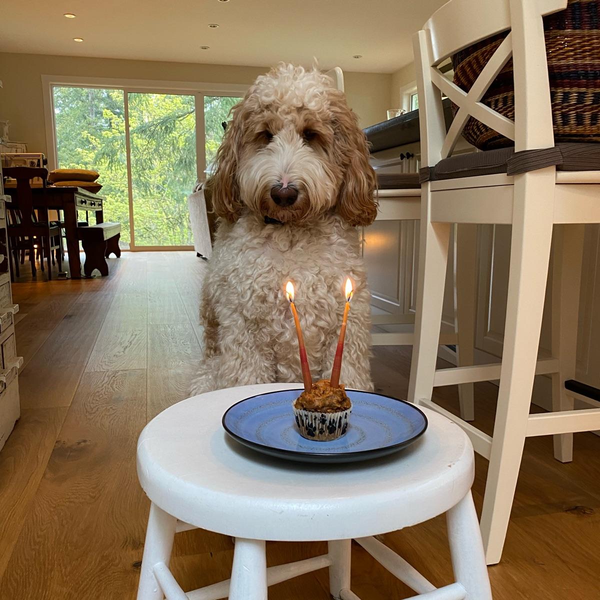 We had our friend Murphy over to celebrate his second birthday – with pupcakes! This is one good dog, he waited for the go ahead so I could get a pic.
