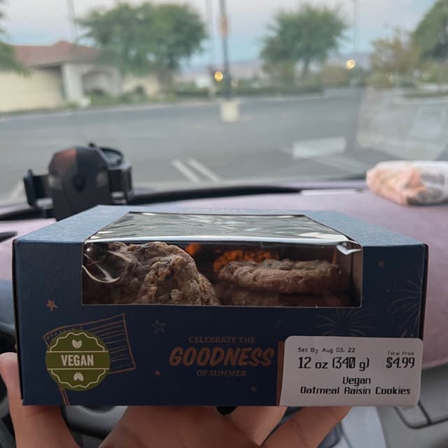 These cookies are sooo good! I love sprouts vegan chocolate chip cookies box so I wanted to try oatmeal raisin next and wow they are just as good! A very slight crisp on the outside but on the inside it’s a nice and chewy cookie. Highly recommend these! These are for sure worth the price, only around $5-6 for a this many cookies^_^🍪