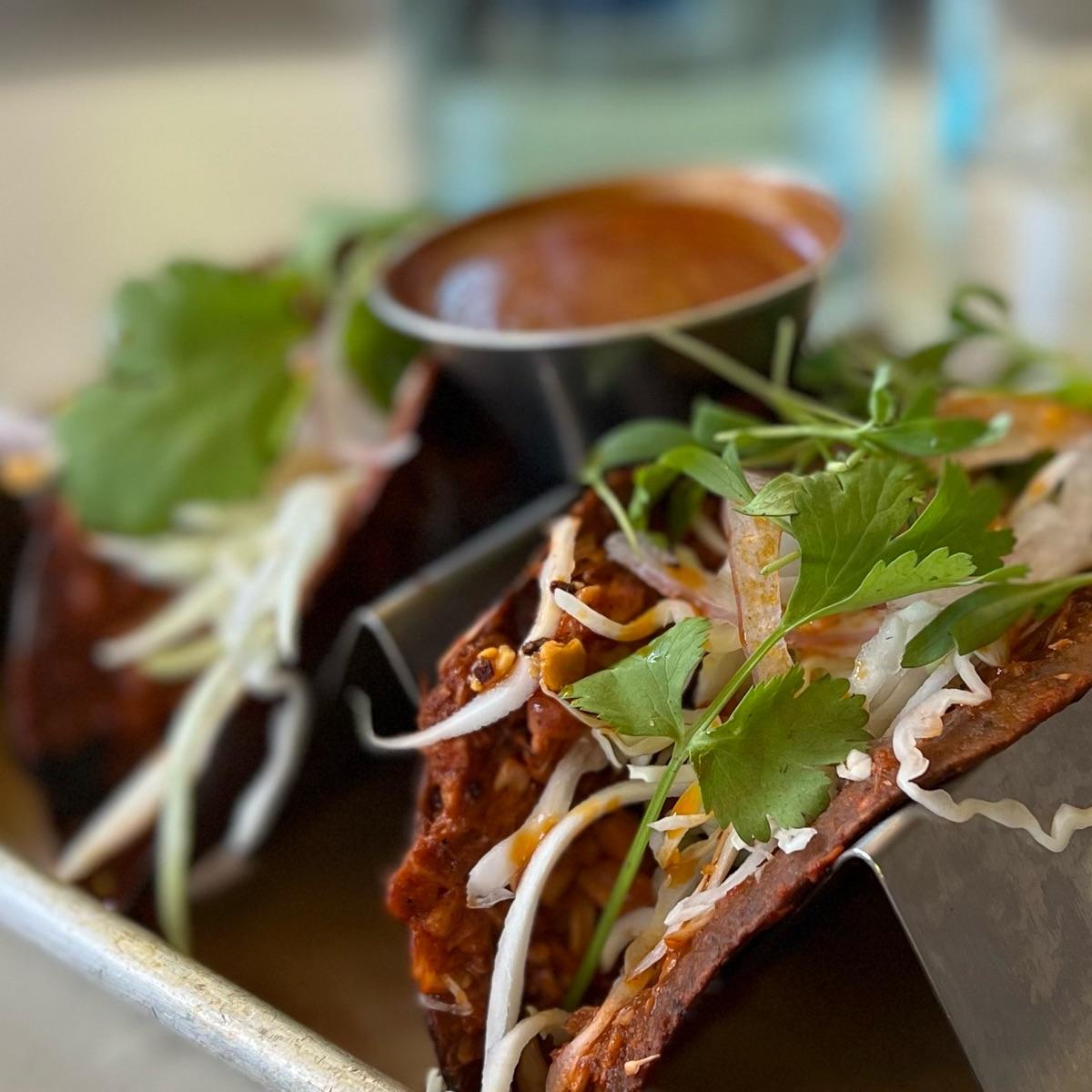 Loved it!!! heirloom corn tortilla, green cabbage + red onion slaw, salsa macha, cilantro + consommé
