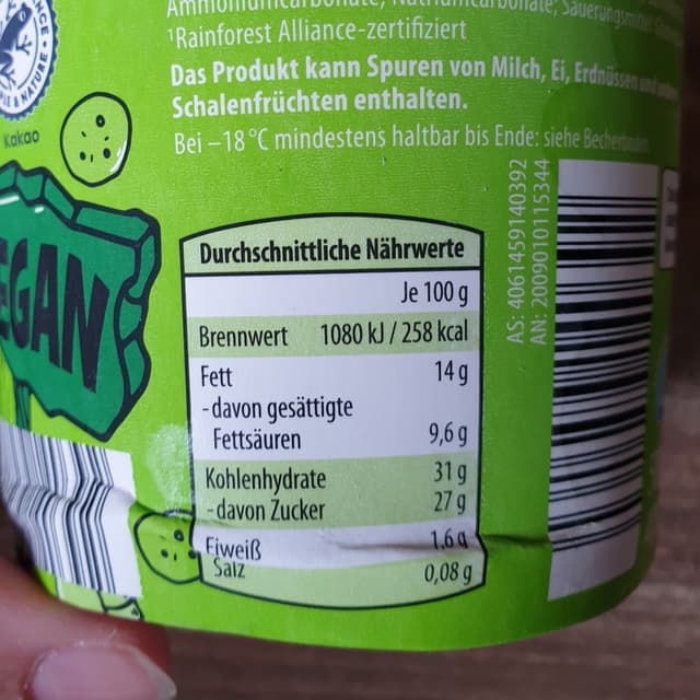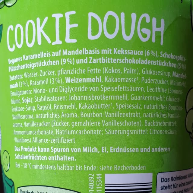 Das Eis enthält kleine Keksteigstückchen und Schokostücke, welche sehr lecker schmecken, aber das Eis selber schmeckt nicht wirklich nach Karamell. Alles in allem ist es aber recht lecker.