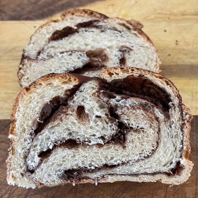 I saw this small chain of vegan Jewish delis on Instagram and it looked so unique and tasty! We don’t live near any of them but their newest location is about 30 minutes away. The same week that location opened, my husband happened to be working in the area so of course I sent him the address to see if he wanted to stop by. I would have preferred to try a sandwich but because he was working, it needed to be something that could travel so he grabbed a couple of babkas. This one was my favorite. It was soft and moist with a deep chocolate-y swirl. Not dry and not overly sweet. I look forward to trying other dishes someday!