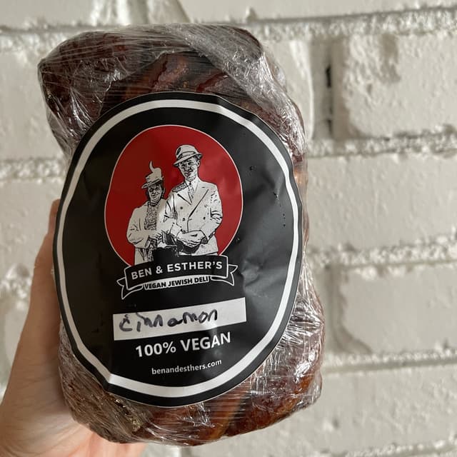 I just reviewed the chocolate babka from this new location of a small chain of vegan Jewish delis and the chocolate one was much better. They have a full menu of bagels, sandwiches, soups all 100% vegan. I normally wouldn’t go for a sweet bread or cake but I asked my husband to swing by this brand new location (about 30 minutes from where we live) because he happened to be working nearby. This was what he grabbed so it could sit in the car for a little bit. Unlike the chocolate flavor, this one was very dry. I appreciate the creative vegan restaurants and delis and I heard everything in there looked and smelled delicious. I just wouldn’t order this one again.