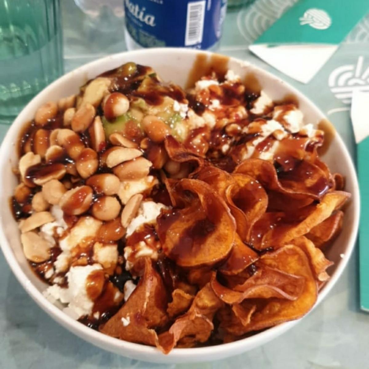 Tofu, arachidi, riso sushi, patate dolci, buonissima