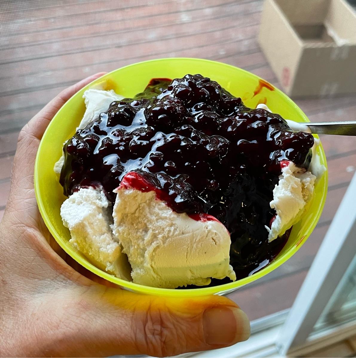 We’re in full blown blackberry season right now. As much as I hate all the bushes we have to maintain in our yard, I love the berries. I don’t typically eat vanilla ice cream unless there is something to top it with. I had made a blackberry sauce for pancakes so I used some for my ice cream and wow was it good!