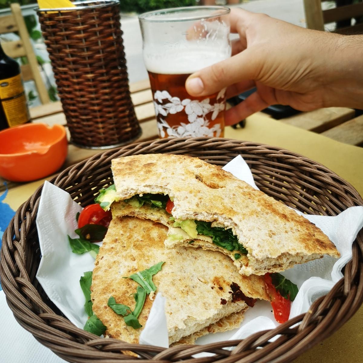 #piadina integrale senza strutto, con #tofu rucola pendolini e #avocadoEccellente sapore, sostanziosa. Prezzo: €9,00.