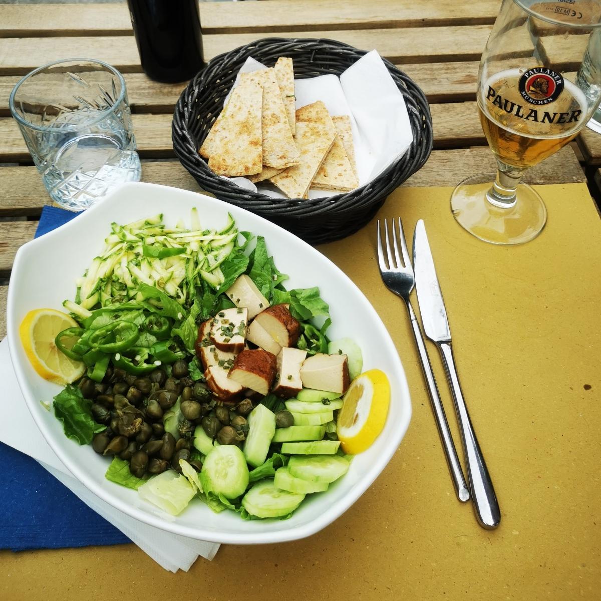 Tofu affumicato, lattuga, cetriolo, capperi, zucchine, erbe aromaticche...