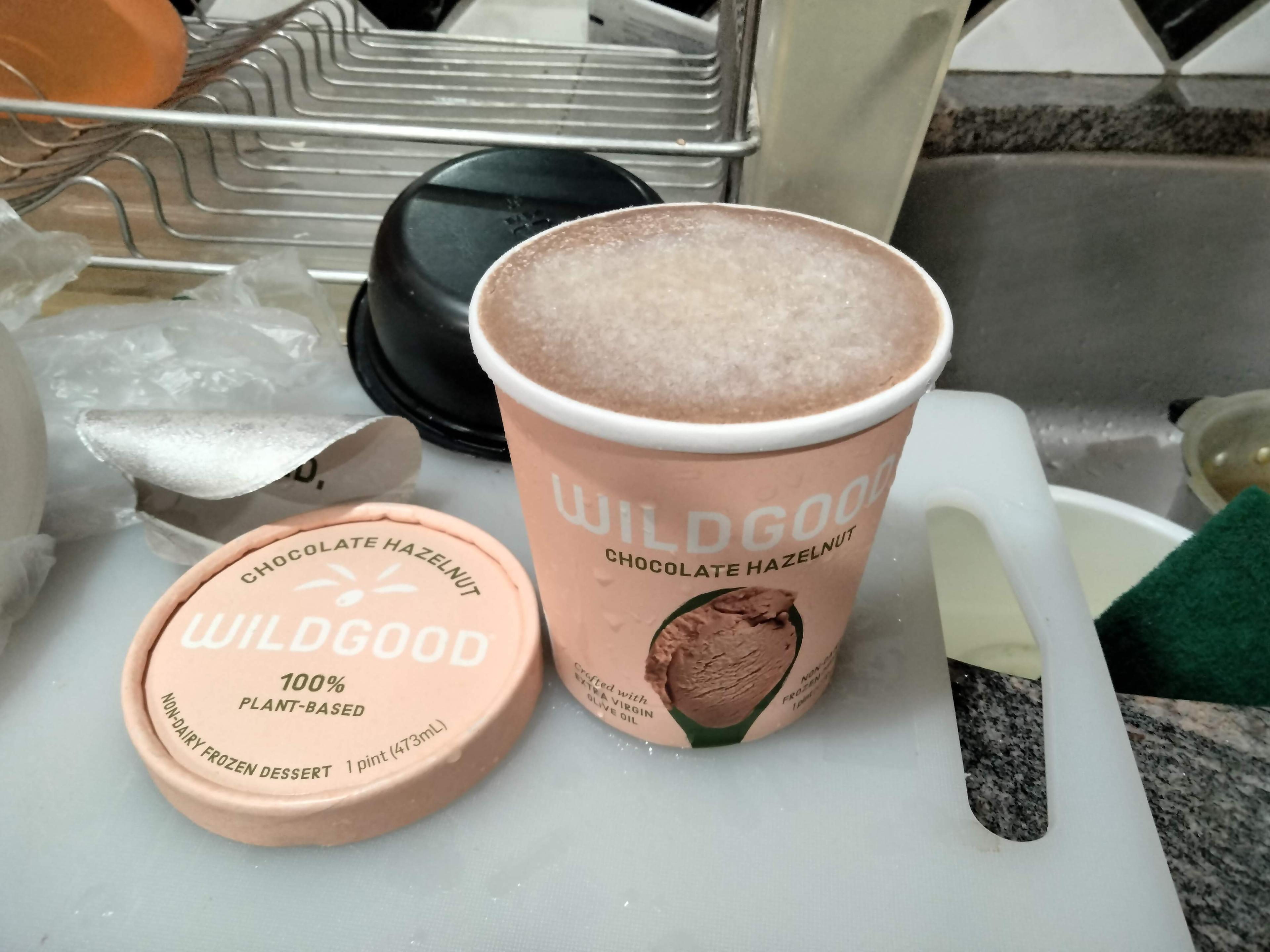 Tasted OK, no funny after taste. Was not creamy, more like a gelato as it is made from water and olive oil. I found crystallized water under the seal as seen in the photo.