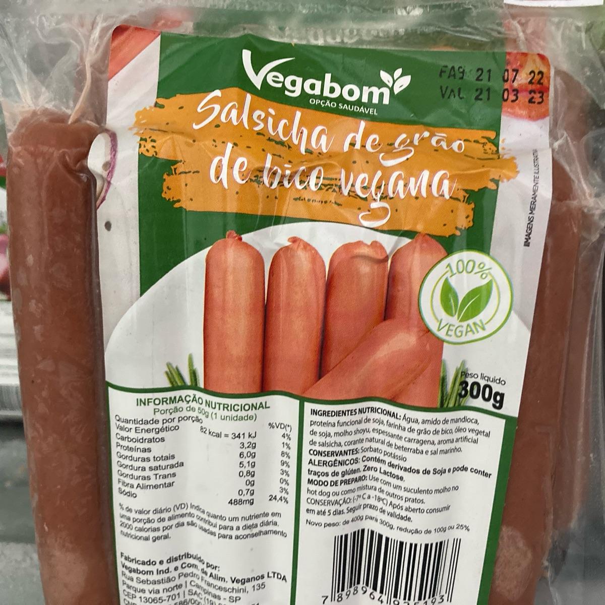 Nunca tinha visto salsicha de grão de bico, e achei bem saborosa.