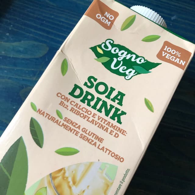 Latte di soia zuccherato con aggiunta di vit B2, B12, D, calcio. Buono