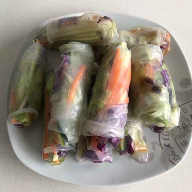 Versatile and easy to roll rice paper. Made rice paper rolls with lettuce, cabbage, carrots and baby marrow. The peanut dipping sauce is as always so flavourful.