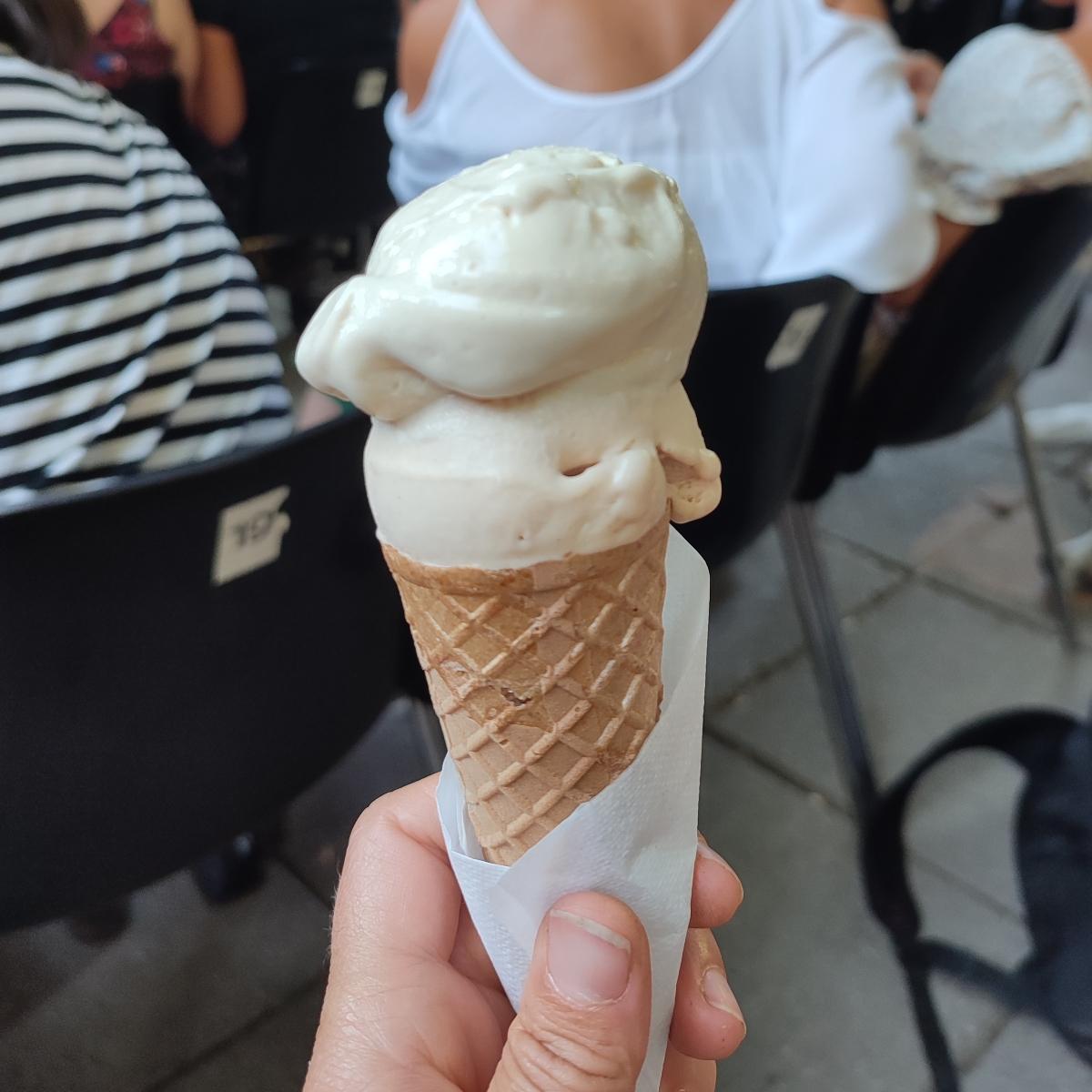 Preso al festival Viva Las Vegan 🌱 buonissimo e cremosissimo, anche se il sapore è molto delicato, avrei preferito qualche pezzetto di croccante per dare un tocco in più. Bello poi trovare anche la cialda vegana