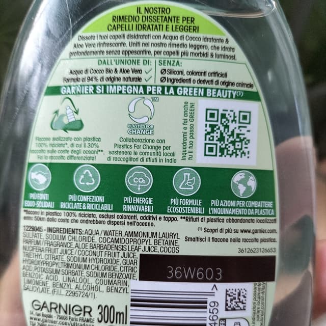 È vero che da #coconutlover che sono🤩la recensione può sembrare un po' di parte 😁ma non posso dire nulla di male di questo prodotto, tutt altro! Quasi completamente di origine vegetale, il flacone viene prodotto con plastica riciclata di cui un terzo da plastica recuperata negli oceani, inoltre c è l impegno di Garnier riguardo le energie rinnovabili, le fonti equo -solidali, la riduzione dell utilizzo di plastica.......come spiegato sul retro della confezione ☀️ dimenticavo!...la profumazione è fe-no-me-na-le 🌸🌈🌊🌳