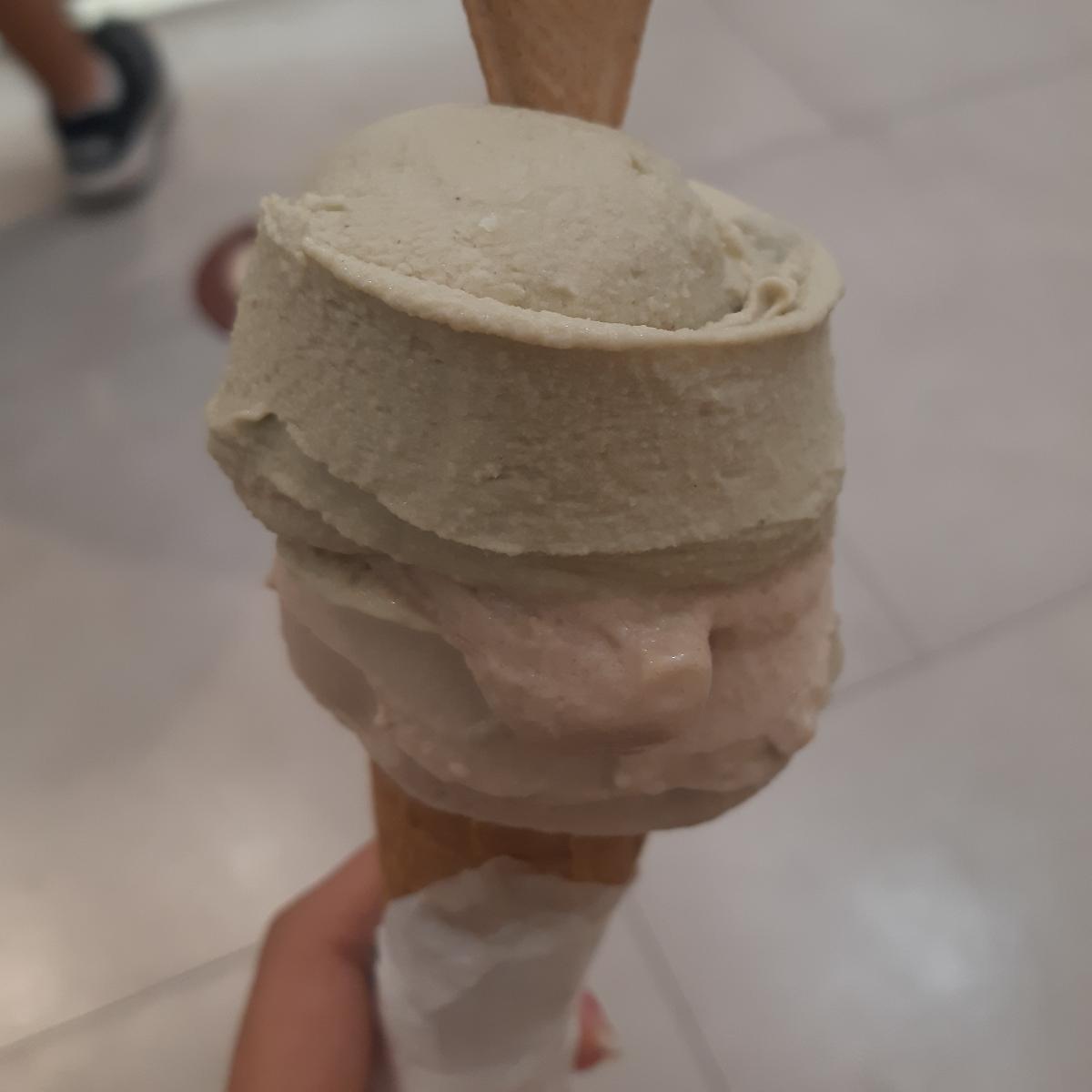 Cono (vegano e gluten free) con due gusti gelato al pistacchio e alla nocciola, molto molto buono 😍😍😍