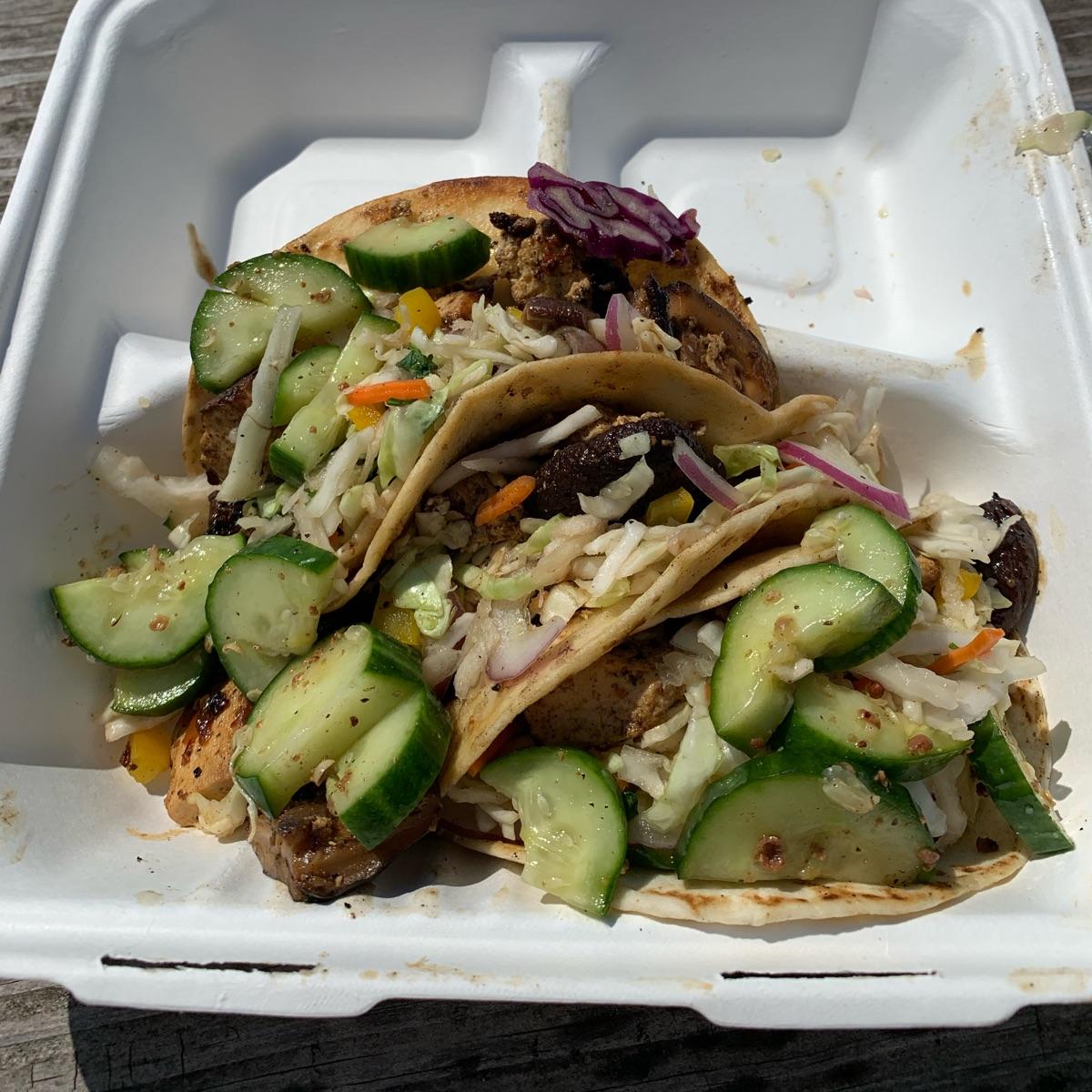 We had Mapo Tofu Tacos at The Bad Seed Food Truck in Grand Marais, MN. This dish was the only vegan item on the menu and was a fun find. It was tangy/spicy with tofu, mushrooms and a really unique slaw. It was super filling too!