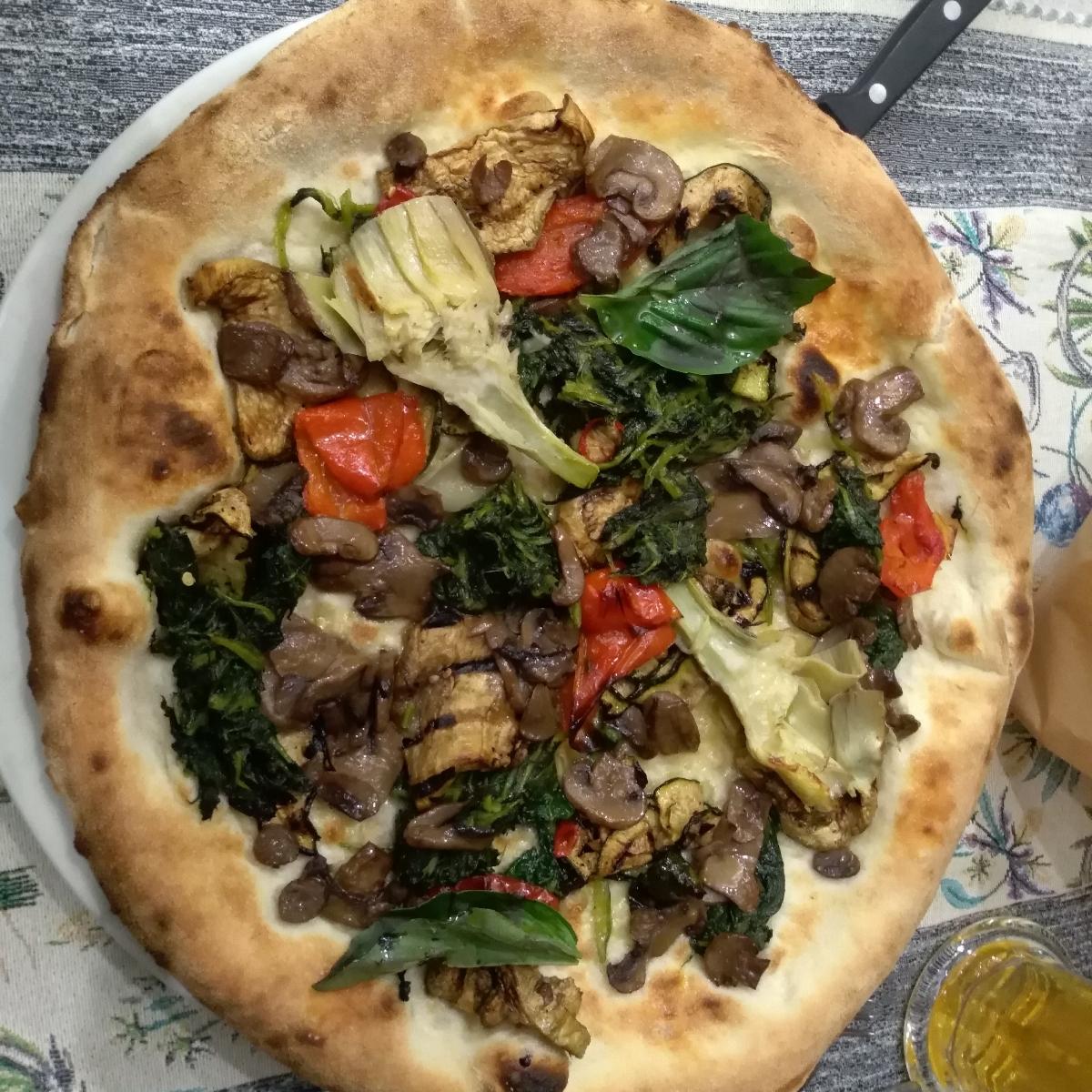 Nessun piatto vegano in menù, ho reso vegana questa vegetariana omettendo la mozzarella e il grana.... Ho apprezzato molto la varietà e l'abbondanza di verdure, un pò meno l'impasto piuttosto gommoso😒