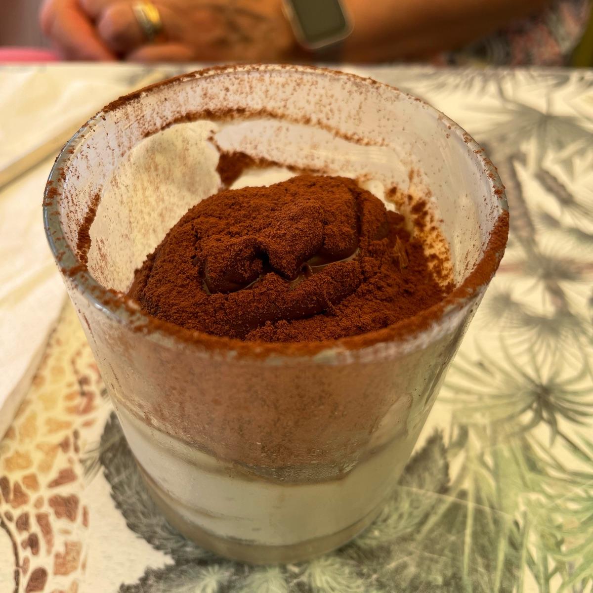Nice version of tiramisu served in a glass. The cream was delicious, probably made with nuts.🍴vegetarian, mostly vegan 🌱📍 Casalnuovo di Napoli (NA)
