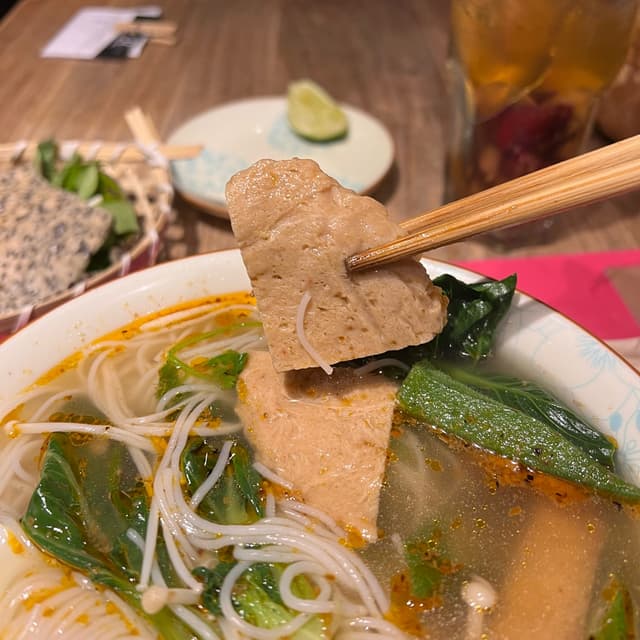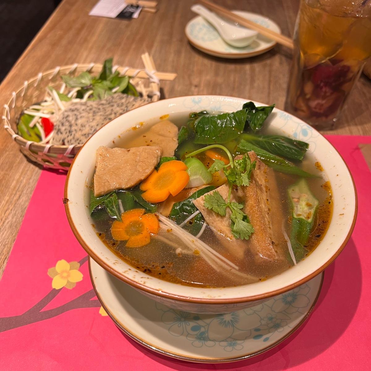 Simple pho 🍜 filled with loads of veggies and tofu. 🤔 tbh, can’t say I recommend this