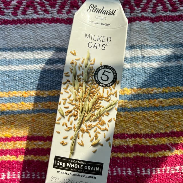 We love Elmhursts Plant Mylk! I prefer the almond mylk since it only has 2 ingredients, no added sugar and “natural flavors” 😆lol!!