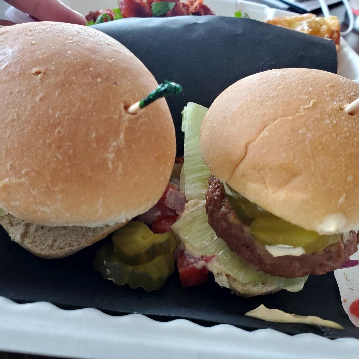 I'm not sure what was on the Beyond sliders that weren't vegan, but the two I got were undercooked and cold. I'm the only vegan at work so I got my own box which came in the bag with the dip and cilantro, not among the hot food, which likely didn't help. Usually a Beyond burger isn't the worst thing I get served 😔