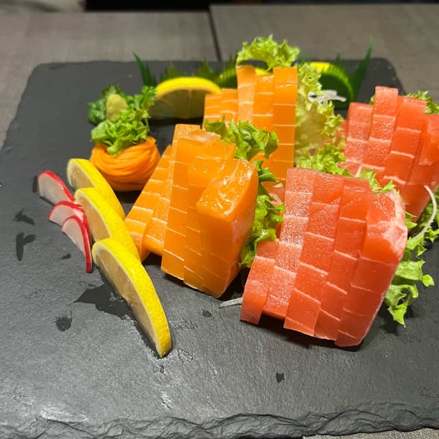 (This photo shows both the salmon and tuna sashimi, the salmon is the orange one). Appearances-wise it quite looks like salmon, but the taste is really not there. It doesn’t taste fatty or fishy, it’s more like a jelly, and AFAIK it’s also not very nutritious. Wouldn’t recommend honestly.