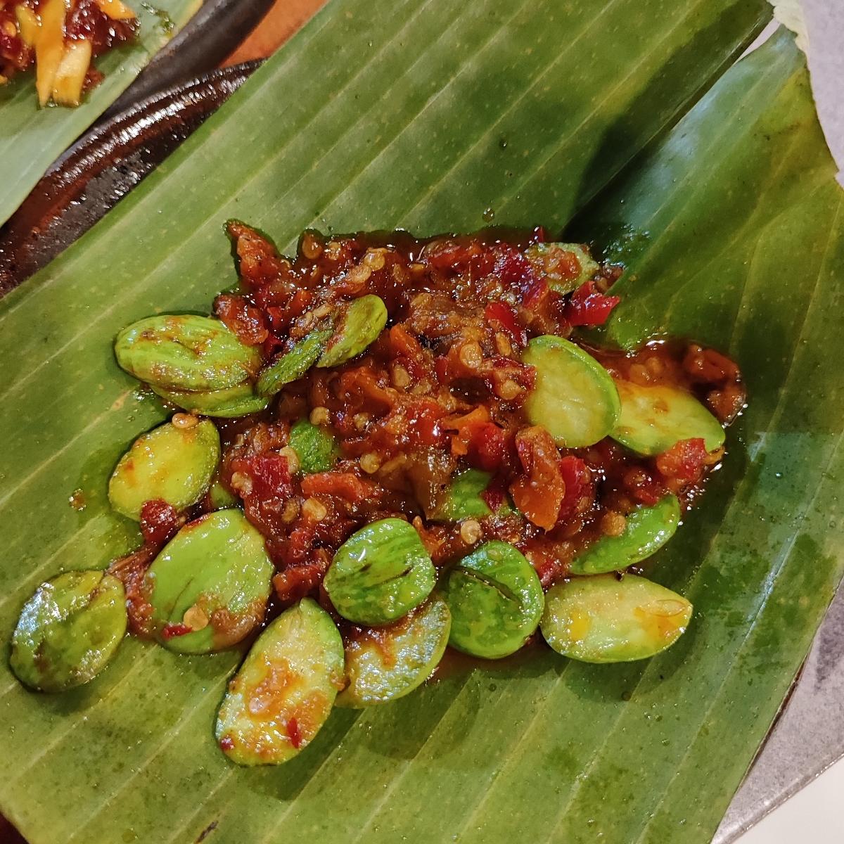 Not my favourite way to eat pete, the infamous stinky bean, because it's so spicy that I can't really taste it ! But I love pete , and that makes my Indonesian friends happy haha 😆