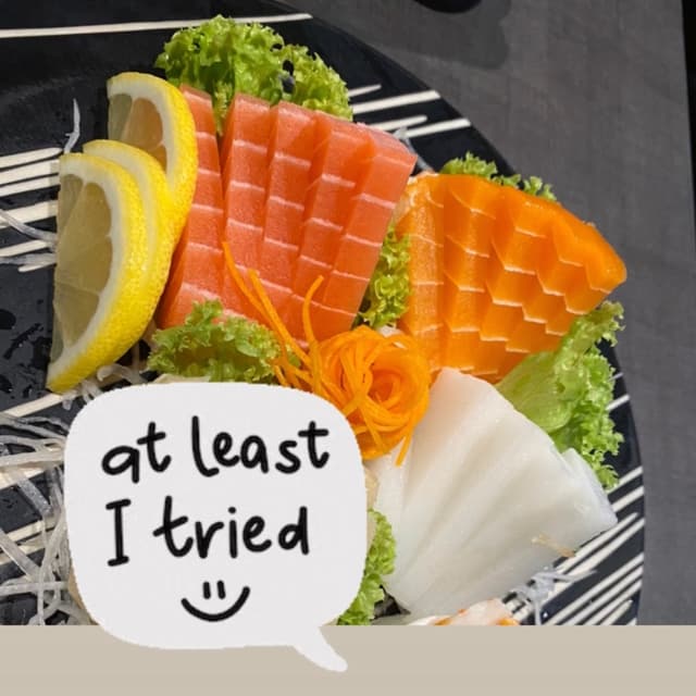 #EveryEffortCount 1 Oct #247/365 #1500The orange one is Salmon Sashimi!! It look really alike to real fish but totally tasted different! Wont order again!