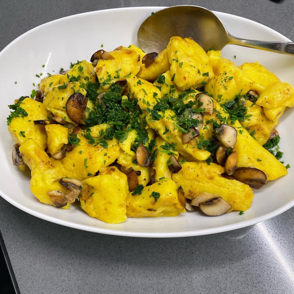 The best egg substitute I tried so far for scrambled egg 😍 And it is wrapped in paper only 🫶🏼 Furthermore, there are only good things in there and so it is a quite healthy breakfast as a special treat on weekends ✌🏼 -3,99€ #veganbreakfast #luxurious