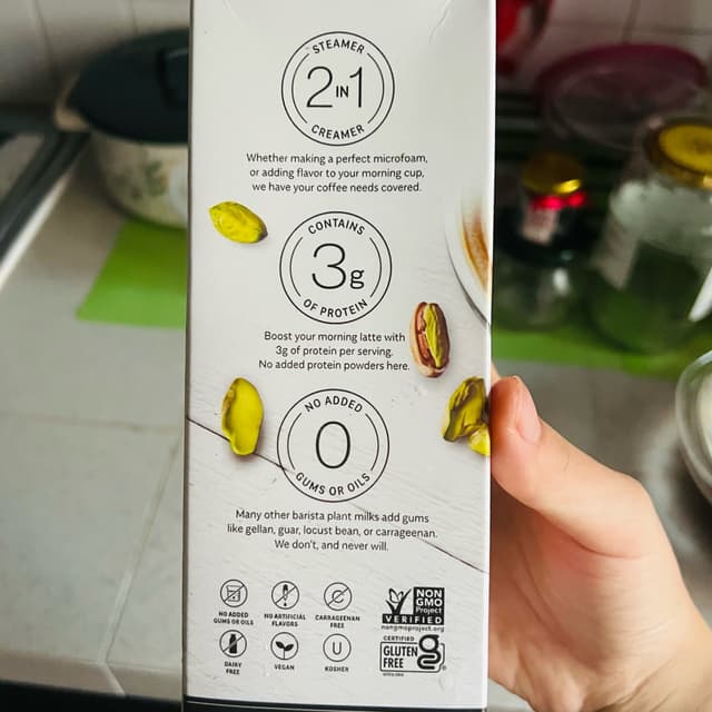 Pretty creamy and great for tea or coffee lattes! Relatively lower in calories as well compared to other barista blends :) Just $2 from Fairprice @ Hillion Mall on clearance! #pistachio #mylk