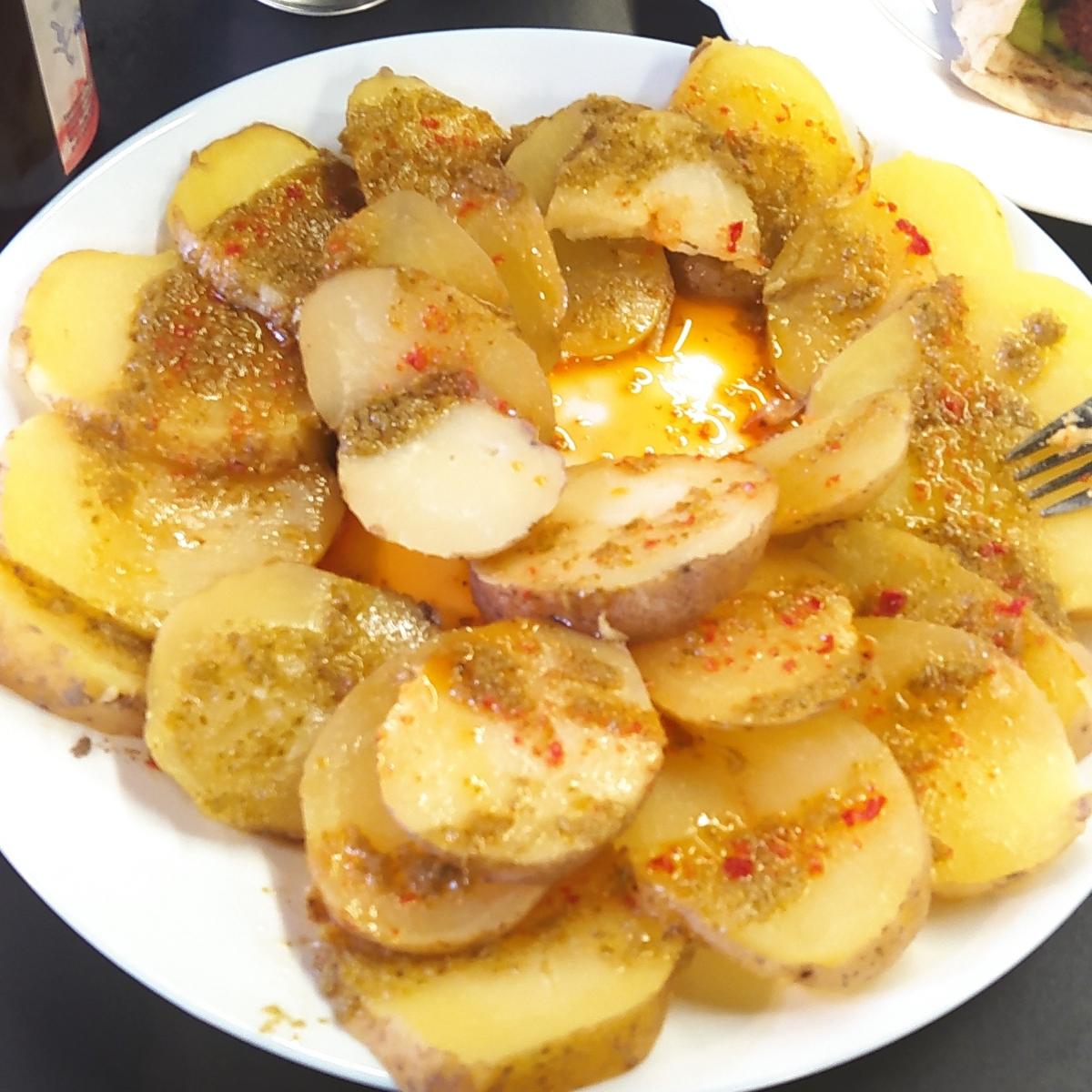 Deliciosas y contundentes papas con mojo, destaca el equilibrio del mojo y si buena ración de vinagre, me recordaba a cuando comes una patatas vinagreta. Una gran ración por 5 euros