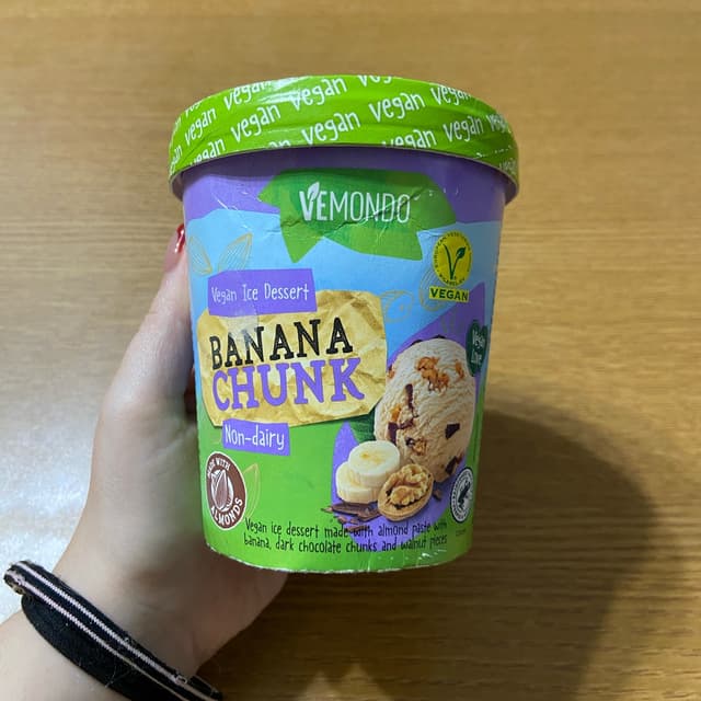 Gelato con banana, noci e scaglie di cioccolato. Me l’aspettavo più dolce ma anche così è molto buono.