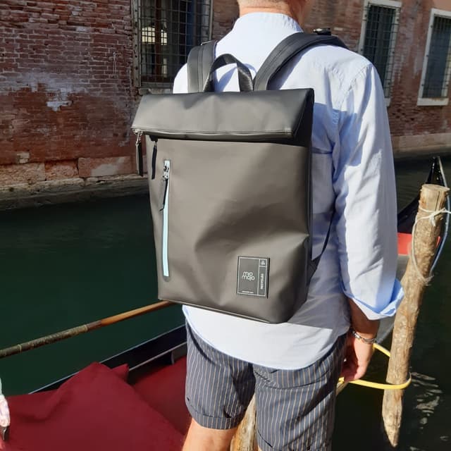 Il nuovo Leonardo di miomojo è ancora più qualitativo e riciclato da bottiglie di plastica, pur restando super cool. Waterproof e perfetto per il pc e chi lavora smart!