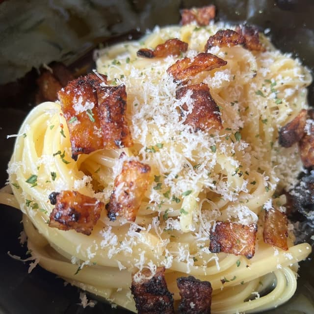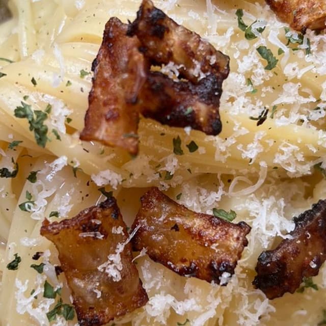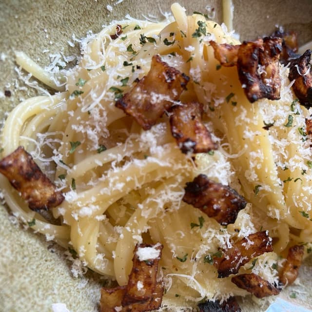Hey! Would you share the method you use to make the "bacon" please? Looks amazing!