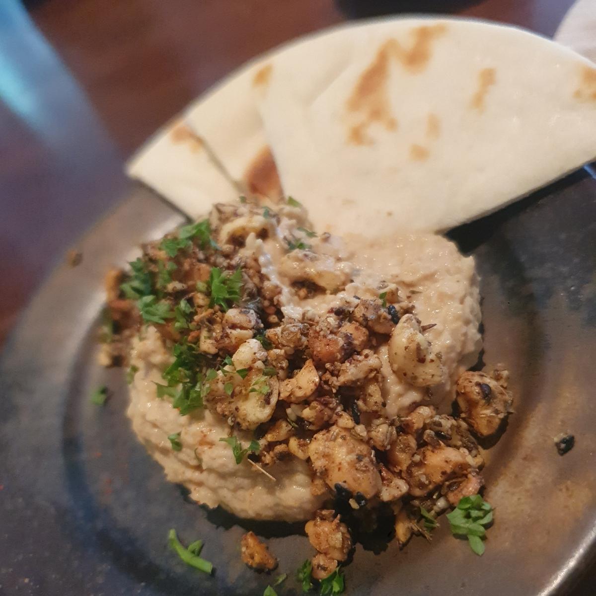 The cashew #hummus was very creamy and tasty and went well with the special vegan bread they offered as their regular bread had yogurt mixed in the dough.